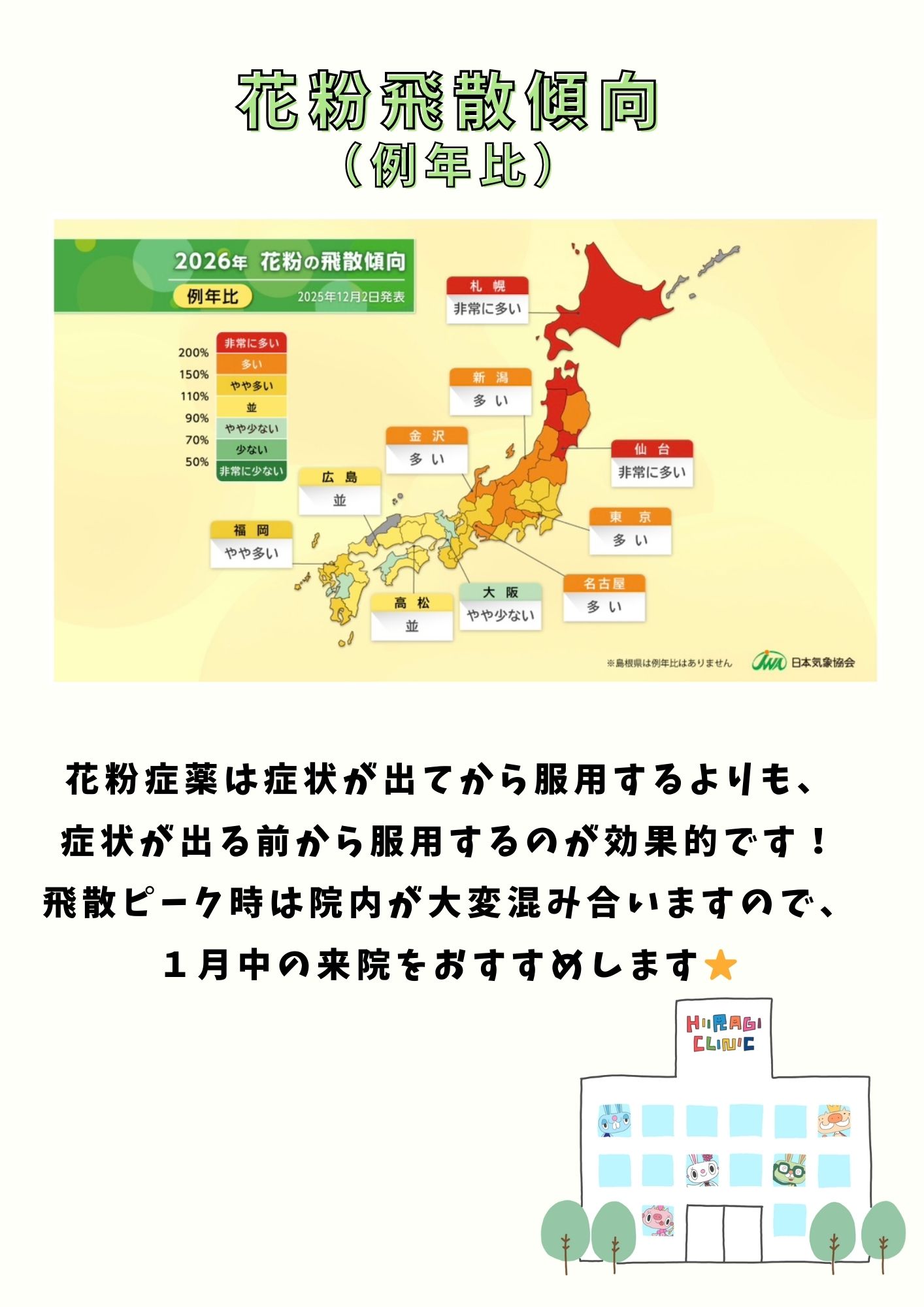 飛散ピーク時は院内が大変混み合いますので、1月中の来院をおすすめします🎵